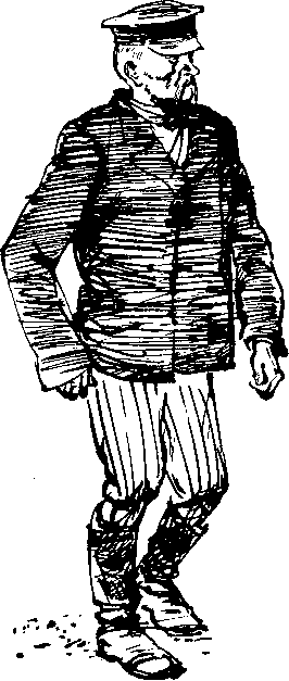 По футбольному полю неторопливо шел маленький, щупленький старичок, с лицом буро-красным, как кирпич, и длинными, вислыми усами. Он был, несмотря на жару, в черном, наглухо застегнутом пиджаке, в картузе и сапогах. За стариком плелся высокий парень, неся в одной руке огромный деревянный не то чемодан, не то сундук, а в другой узел, из которого выглядывала полосатая перина.