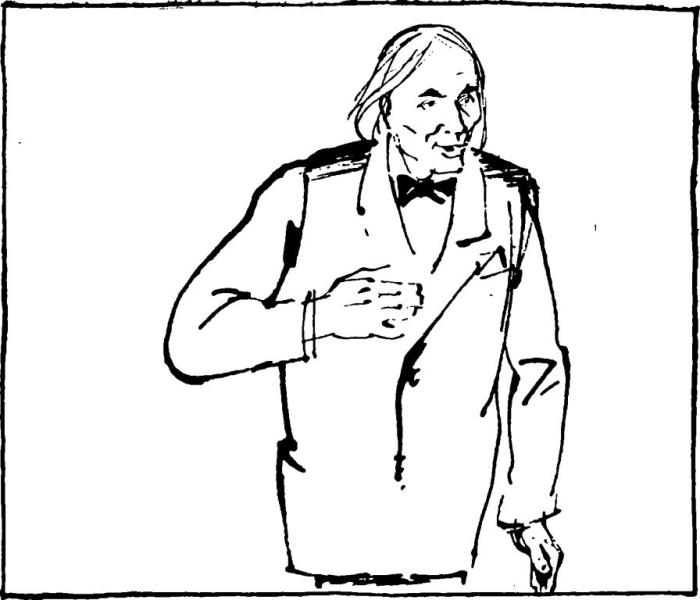 Старичок выглядел необычно. Длинные, почти до плеч, седые волосы, белый крахмальный воротничок, черный галстук «бабочка». Голос густой, с красивыми «перекатами».