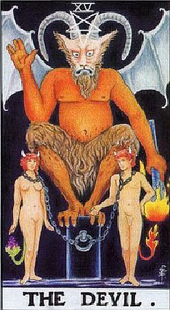 Считается, что в пребывании на физическом плане ничего хорошего нет и князь мира сего – Дьявол. Поэтому на карте 15-го аркана и нарисован дьявол – Бафомет.