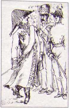 Карл Юхан инспектирует войска. Карикатура Ф. Дарделя