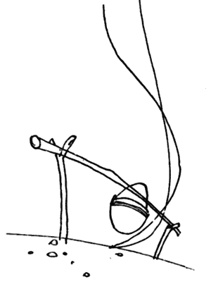 Осталось два куска хлеба и четыре кусочка сахару. Разыскивая нож, я наткнулся в рюкзаке на что-то влажное. Это был закисающий помидор. Вымыл его, пристроил на обрывок газеты.