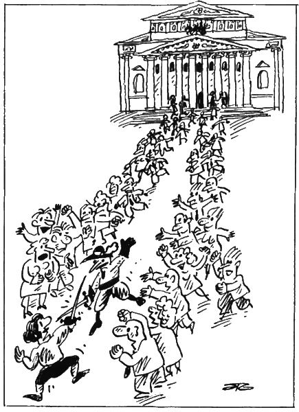«Целевые» спектакли для школьников открывали также огромные возможности в личных делах «зазывал Мельпомены», как тогда называли уполномоченных по реализации билетов. Конечно, школьник не мог купить билет в театр за 1 руб. 50 коп. Поэтому перед началом спектакля у входа скапливалась большая группа мальчишек, которых шустрый дядя «поштучно» пропускал в театр, в уме отсчитывая, сколько же надо впустить ребят на десять билетов, если каждый билет должны были оплатить двое или трое из них?.. Сложная «арифметика» и… опасная, ведь театр находился не в космосе, а всего в пяти минутах ходьбы от отделения милиции…