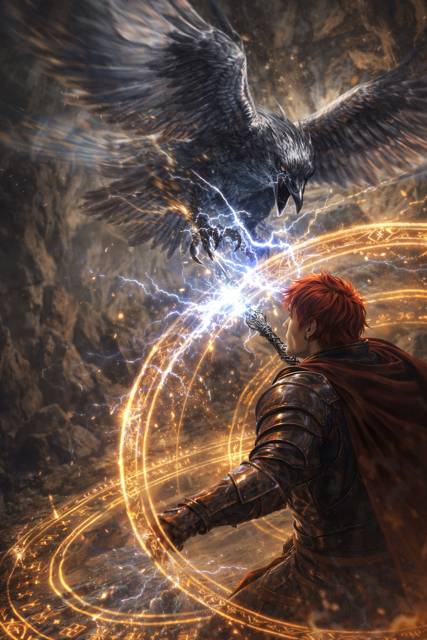 Птица резко переместилась ко мне и попыталась разорвать мою голову когтями. Однако натолкнулась на ритуальный круг, который ударил по ней электричеством. Я тут же произнёс заклинание и создал новые ритуальные круги, из которых начали вылетать цепи. Птица быстро разрывала их, выпуская мощные волны пространственной энергии. При этом её перья начинали мерцать, перетекая от серебристого цвета к чёрному.