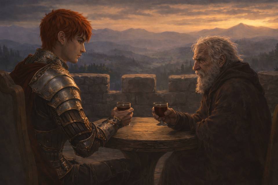 Переместившись на вершину башни, с которой открывался вид на горы, я сел, налил себе вина и пригубил его.
