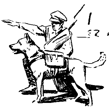 Работа, выполняемая связной собакой: доставка донесений с одного поста связи на другой, в боевой обстановке, помимо того, – подноска боеприпасов, пищи на передний край, размотка телефонного кабеля и т. п. Собаки, используемые как подносчики, должны обладать большой мощностью и физической силой, свободно поднимая тюк весом в 8—10 килограммов. Обучение же абсолютно одинаково. Пионер может выучить свою собаку, чтобы она приносила его отцу завтрак на службу (и такие примеры есть), сопровождала мать на рынок, освободив ее от необходимости нести купленные продукты в руках. Для этого может быть вполне изготовлен своими силами небольшой легкий, надеваемый на спину собаки, ранец-рюкзак, нечто вроде переметной сумы или вьюка, применяемого жителями гор для перевозки на ишаках.