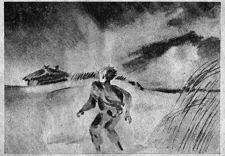 «Митька, – кричу, – Митька я, Хряпов, я с судна!» Тут он только поверил и помог мне вылезть, а баба фонарь держала. Тут стали они меня жалеть, чай поставили, печку камышом затопили. Я им рассказал про себя. А они мне сказали, что это остров Джарылгач, что здесь никто не живет, а верблюдов помещицких сюда пастись приводят и только кой-когда старик их поить приезжает. Они могут подолгу без воды быть. Берег тут – рукой подать. А пошли верблюды за мной к избе потому, что подумали, что я их пить зову, они свой срок знают. Старик сказал, что деревня недалеко и почта там: завтра домой можно депешу послать.