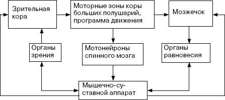 Сигналы от мышечно-суставного аппарата по восходящим трактам поступают в подкорковые структуры, а затем в зрительные зоны коры, куда одновременно приходят сигналы с органов зрения, контролирующих двигательный акт.