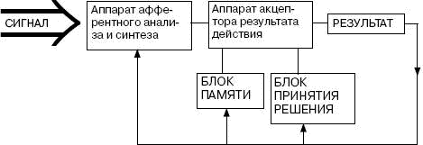 Выдающийся физиолог нашего времени, ученик И.П. Павлова – П.К. Анохин детально разработал механизм оперативных функциональных систем, формирующихся в ЦНС при решении каждой конкретной задачи для целостного организма. На схеме 11 мы приводим несколько упрощенную схему построения функциональной системы (по П.К. Анохину).