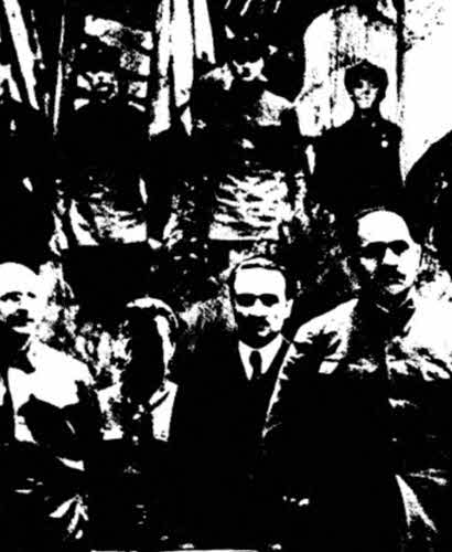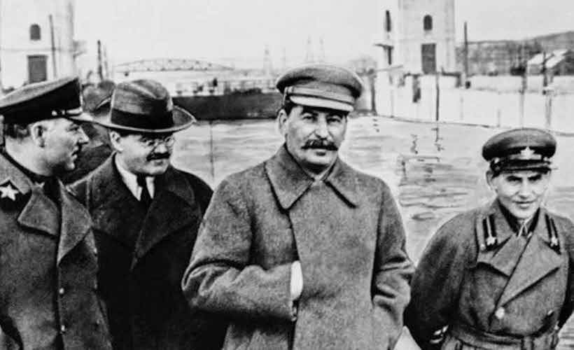 Вскоре после публикации этого в снимка в печати лицо ставшего «врагом народа» Ежова (второй слева) замазали черной краской