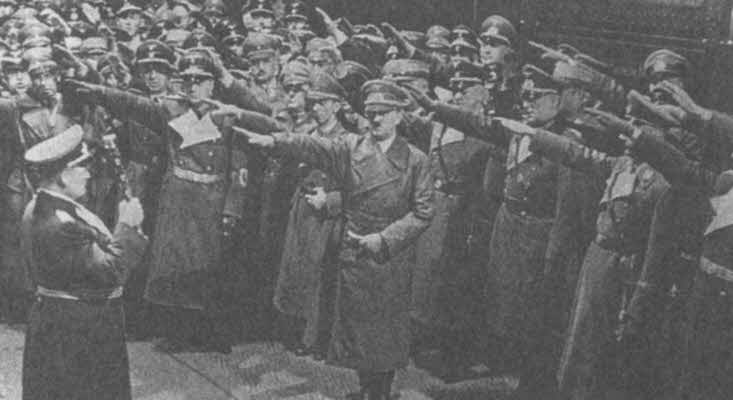 Г. Геринг, В. Кейтель и Г. Гиммлер поздравляют фюрера с днем рождения