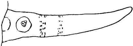 У основания бивня можно было разглядеть часть окружности, поменьше половины. Другая половина была скрыта землей. Рядом – правильный круг, сантиметров семь в диаметре. В верхней части этого круга был нарисован треугольник с округленными углами. Внутри треугольника – какие-то значки. Правее круга – два столбика значков. Бивень выглядел так: