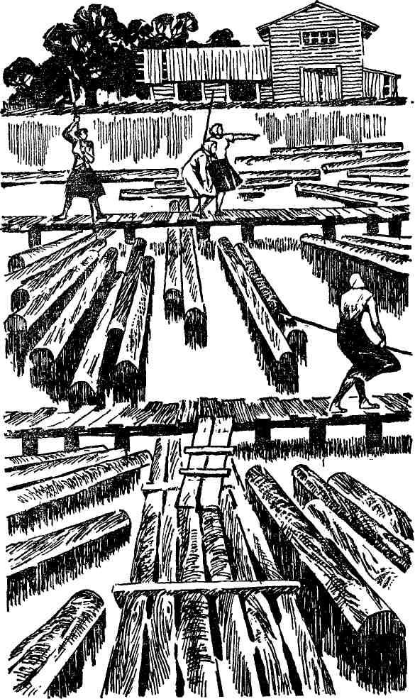 Сплоточные станки работали полным ходом, пучки бревен проворно выскакивали из-под контрольных рам. Девчата-сортировщицы застыли с опущенными в воду баграми и добросовестно глазели на меня. Я только никак не мог понять: догадываются уже они, кто я такой и зачем припожаловал к ним сюда, или просто рады на минуту оторваться от однообразной работы и поглазеть на свежего человека.