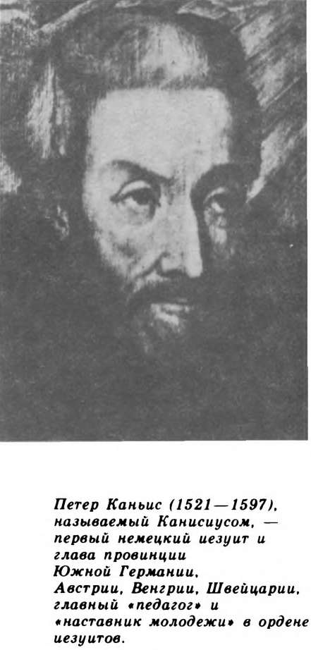 Собственно говоря, обосновались иезуиты здесь еще в XVI в., когда чрезвычайно высокочтимый орденом Петрус Канисиус, педагог, много сделавший для разработки иезуитского катехизиса, основал в Кельне при гимназии «Трех королей» колледж. Воспитанники его четко усвоили главные правила «Общества»: из школы выходили инициаторы кровавых столкновений с протестантами и вдохновители аутодафе над протестантскими книгами, чья практика была впоследствии развита в гитлеровской Германии. Даже после упразднения ордена в 1773 г. бывшие иезуиты сохранили за собой места преподавателей в гимназии.