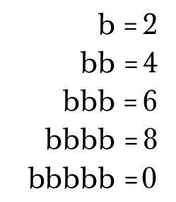 Затем поставим напротив каждой комбинации число из четных и нечетных цифр, выражающих цифровые значения символов «a» и «b».