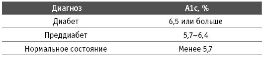 2. A1c (или HbA1c). Этот анализ крови даёт информацию о среднем уровне вашего сахара в крови за последние два-три месяца. Он измеряет процент сахара в крови, связанного с гемоглобином (белком – переносчиком кислорода в эритроцитах). Результат указывается в процентах, как показано в таблице ниже: