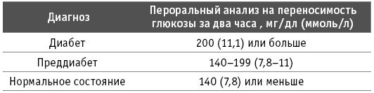 3. Пероральный анализ на переносимость глюкозы. Этот анализ измеряет, насколько хорошо ваш организм использует сахар. Вы голодаете ночью, а затем пьёте сладкую жидкость (растворённую в воде глюкозу). Затем ваш уровень сахара в крови измеряется периодически в течение следующих двух часов. Интерпретация результатов приводится в таблице ниже: