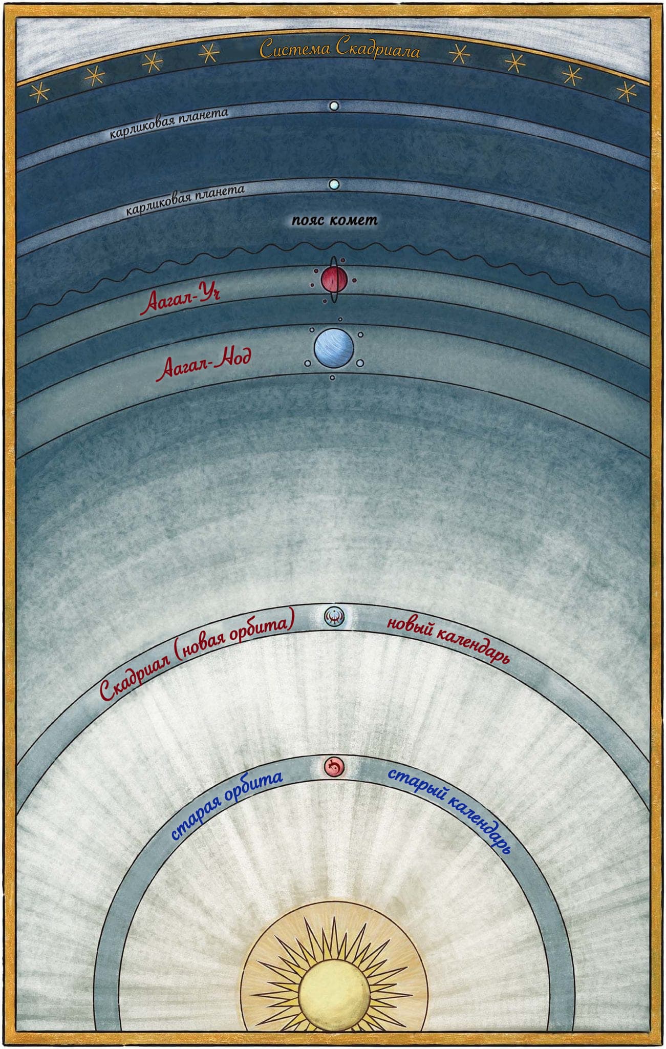 Это мощная магия той разновидности, когда обычные люди часто получают доступ к огромным выбросам силы. Попробуйте назвать другую планету, за исключением разве что Рошара, где в руки простых смертных регулярно попадает подобное количество инвеституры. В истории Скадриала насчитывается несколько мужчин и женщин, которые обретали доступ к огромной силе, и это приводило к невероятным эффектам. Самое очевидное доказательство можно увидеть на звездных картах, любезно предоставленных Гуйном: у Скадриала указаны две орбиты. В определенные моменты отдельные личности буквально передвигали планету с места на место (к слову, это сильно усложнило попытки разобраться в летоисчислении).