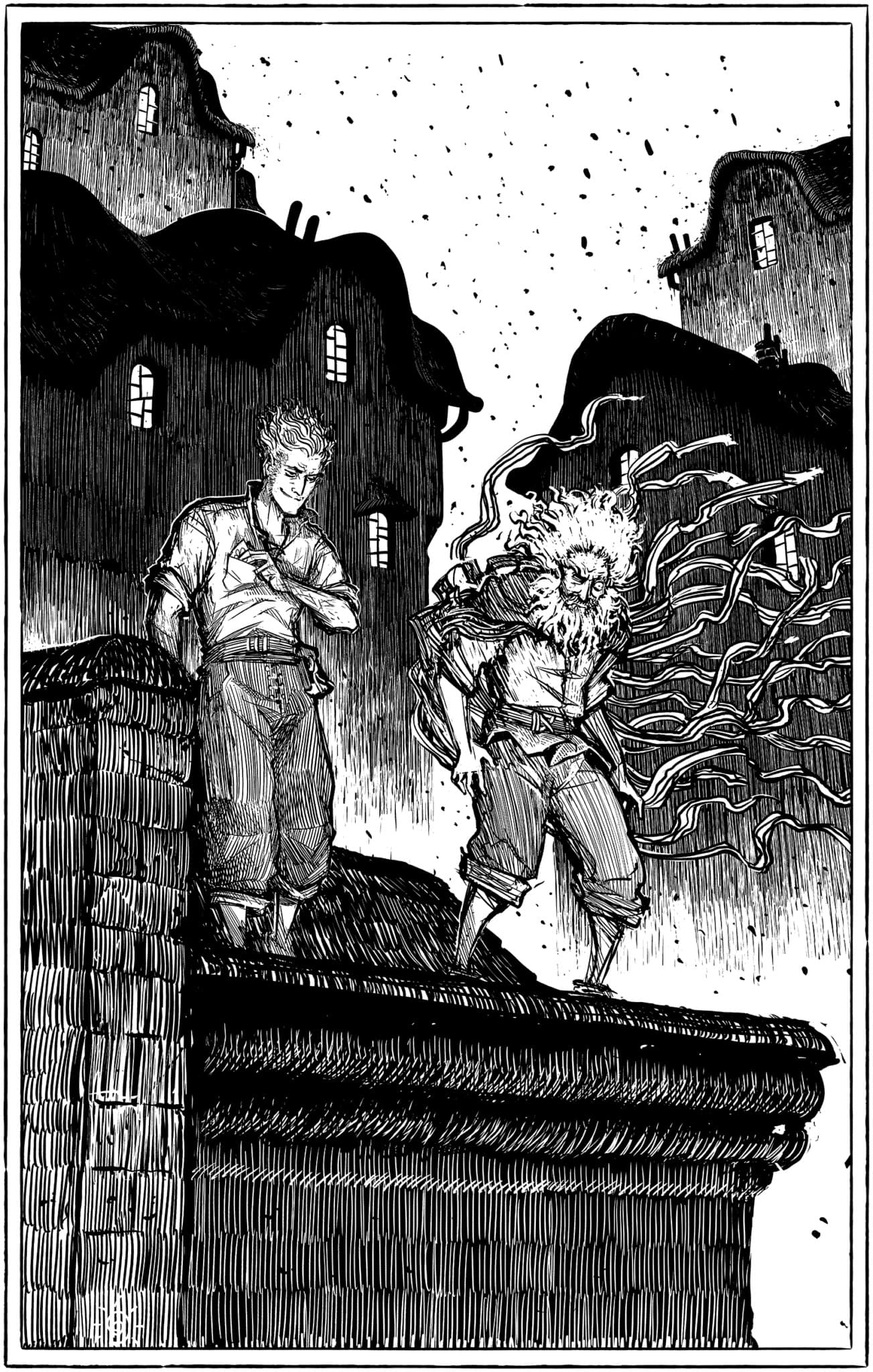 Джеммел вдруг взревел и невероятно быстро оказался рядом с Кельсером. Схватил его за грудки, сбил с ног, загремев черепицей, и навис над ним.