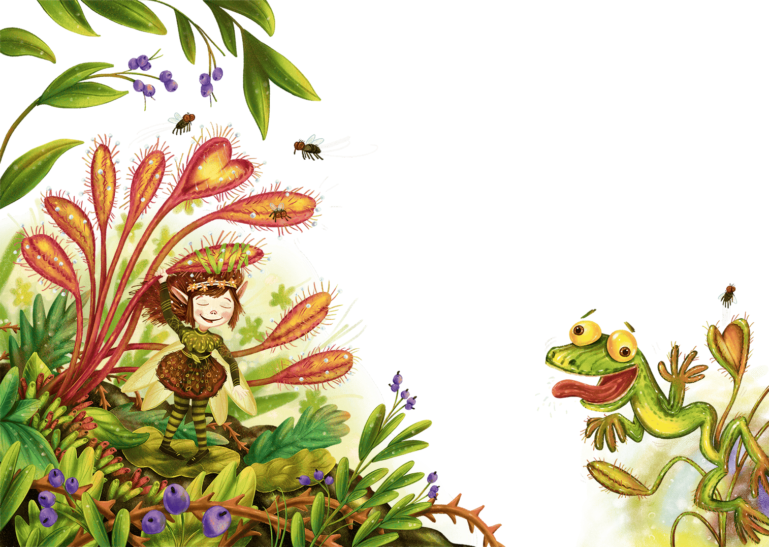 О плотоядных растениях-росянках на просеке все хорошо знали, потому что росянки только и делали, что весь день хватали всё, что пролетало мимо. В основном всяких насекомых. Феям они были неопасны, потому что, как вы, должно быть, знаете, ума у растений немного. По крайней мере, не столько, сколько у фей из сверкающих лесов Амрии. Как бы то ни было, раньше Кларе не приходилось иметь с ними дело, поэтому она подошла к растению с некоторой опаской. Растение было невысоким, однако имело длинные листья-ловушки, которыми приманивало мух и прочих мелких насекомых.