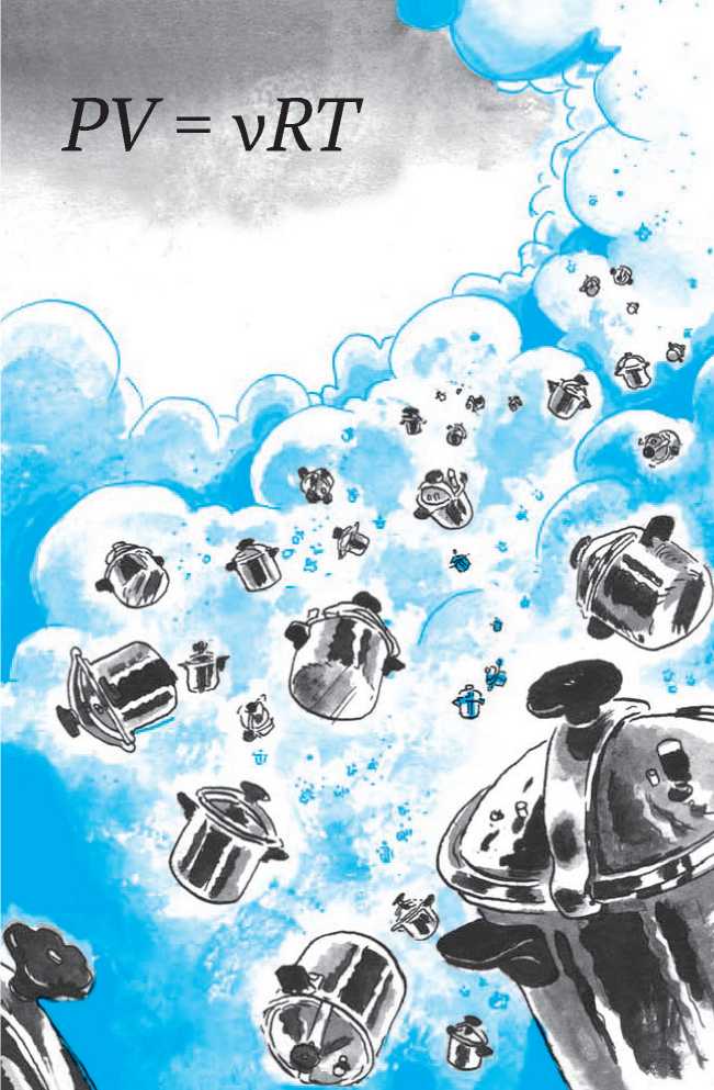 И снова перед нами очень простое уравнение, которое описывает зависимость давления от температуры, или уравнение состояния многих распространенных газов, включая окружающий воздух, при условии что они еще «недостаточно плотные». Этот закон очень важен сам по себе, так как позволяет понять такое важное природное явление, как изменение атмосферного давления с высотой. Уравнение состояния идеального газа при применении в научных лабораториях и промышленности раскрывает путь к точным расчетам и управлению газовыми средами: воздухом, паром и т. д.