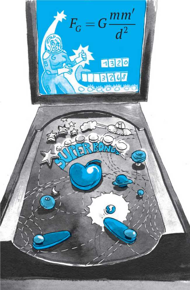 Поскольку все это я осознал спустя довольно длительное время, после того как впервые встретился с законом тяготения Ньютона, было бы нечестным притворяться, что этот закон мне никогда не нравился из-за не по годам развитой интуиции. Тогда почему? Возможно, потому, что когда закон тяготения преподают в школе, его уравнение оказывается просто бесполезным, так как школьники практически не в состоянии использовать его! Я имею в виду действительно использование с теми самыми целями, для которых он был применен Ньютоном и его последователями: предсказывать движение планет, хотя бы нашей старой доброй Земли.