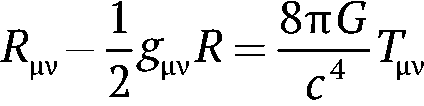 описывает свойства пространственно-временной сетки: размер ячейки и ее кривизну, в то время как в правой части стоит переменная величина Tμν описывающая распределение массивной материи или энергии на этой сетке.