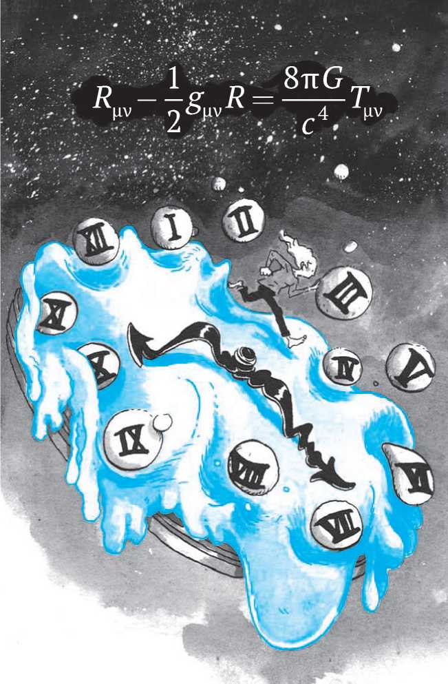 «Массивные объекты искривляют пространство-время вокруг себя. Другие объекты чувствуют это искривление, и результат взаимодействия кажется притяжением».