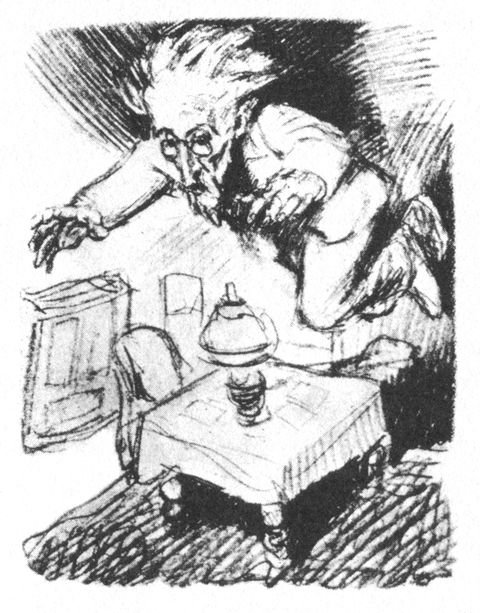 Спостерігаючи за цими його терплячими розвідувальними діями на теренах кімнати, можна було подумати, що він завзято й невтомно чогось шукає. Час до часу він забігав у куток кухні, під бочку з водою, що протікала, і, дійшовши до калюжі, здавалося, пив. Іноді пропадав кудись на цілі дні. Він, здавалося, міг чудово обходитися без їжі, й ми не зауважували, щоби внаслідок цього він якось підупадав на проявах життєздатності. Зі змішаними почуттями сорому й гидливості ми за дня підживлювали в собі потаємну обаву, що вночі він може навідати нас у ліжку. Але такого не трапилось ані разу, хоч удень він мандрував усіма меблями, особливо полюбляючи перебування у шпарині між стіною та шафою.