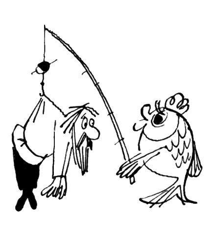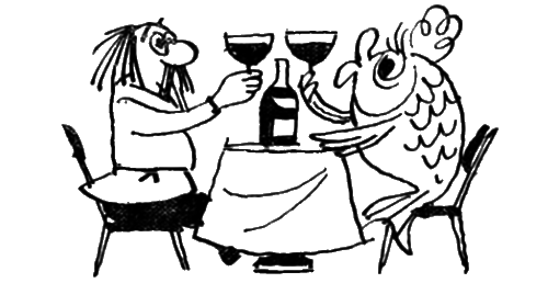 – Попался, старче, – молвила рыбка человечьим голосом, – веди меня в ресторан.