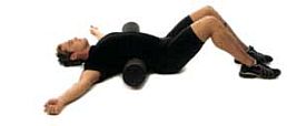 Грудное расширение. Ваша грудная клетка часто находится в стесненном состоянии из-за неправильного положения тела и напряженных мышц, окружающих ваш позвоночник (не говоря уже о годах воздействия гравитационного притяжения). Это упражнение делает мягкие ткани в области грудной клетки более подвижными. Лягте поперек эластичного ролика, диаметром около 6 дюймов или 15 см (вы наверняка сможете найти такой ролик там же, где приобрели ролик, показанный в первом упражнении этого раздела). Вы можете выполнять это упражнение статически, сохраняя позицию неизменной, или сделать его динамическим (и более эффективным), прокатываясь на ролике на несколько дюймов вперед (то есть, будто ролик катится по вашей спине) и назад (к исходному положению, показанному на рисунке). Делайте это упражнение в течение пяти минут каждый день, добавляя минуту или две каждую неделю, пока не достигнете 10 минут.