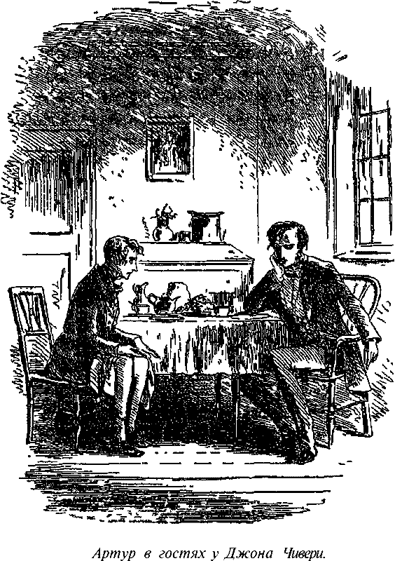 Чувствуя, что, если он откажется, юный Джон во всяком случае принесет ему чай, и желая показать, что помнит просьбу мистера Чивери старшего и принимает извинение мистера Чивери младшего, Артур встал и выразил готовность отправиться пить чай к мистеру Джону. Юный Джон запер дверь его комнаты, очень ловко засунул ключ к нему в карман и повел в свои собственные апартаменты.