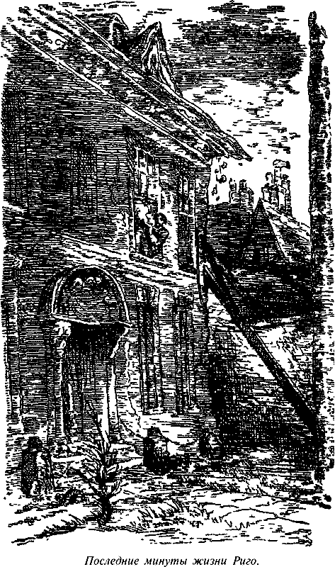 Рыли всю короткую летнюю ночь при свете газовых рожков, рыли, когда солнце показалось на горизонте, рыли, когда оно поднялось к зениту, рыли, когда оно склонилось к закату и скрылось, наконец, за горизонтом. Ночью и днем раскопки шли без перерыва; рыли, увозили и уносили землю, мусор и осколки в тачках, телегах, корзинах; но наступила уже вторая ночь, когда нашли грязную кучу тряпья, которая была иностранцем до тех пор, пока голова его не разлетелась, как стеклянный шар, от удара громадной балки.