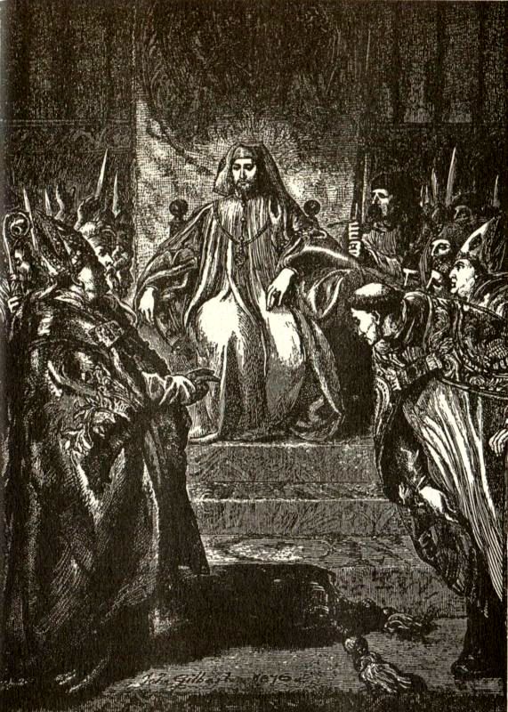 Дав делу совершиться, король при первом удобном случае заявил, что никогда ничего подобного не одобрял и что все это незаконно, и тайно созвал судей для подписания соответствующей декларации. Тайна тотчас была выдана герцогу Глостерскому. Герцог Глостерский с сорокатысячным войском встретил короля при въезде в Лондон, дабы навязать ему свою волю. Король не имел силы противиться. Его фавориты и министры были привлечены к суду и безжалостно казнены. Среди них оказались два человека, к которым народ питал очень разные чувства. Один – Роберт Тресилиан, главный судья, проклинаемый за то, что он учредил так называемые «кровавые судбища» для расправы над восставшими. Второй – сэр Саймон Берли, почтеннейший рыцарь, дражайший друг Черного Принца, воспитатель и попечитель короля. Добрая королева Анна даже опустилась перед Глостером на колени, умоляя сохранить ему жизнь, но Глостер, который (с основанием или без основания) боялся и ненавидел Саймона, сказал, что, ежели ей дорога мужнина корона, то пусть она лучше помалкивает. И творилось все это руками кем-то превозносимого, а кем-то хулимого – и по заслугам – парламента.