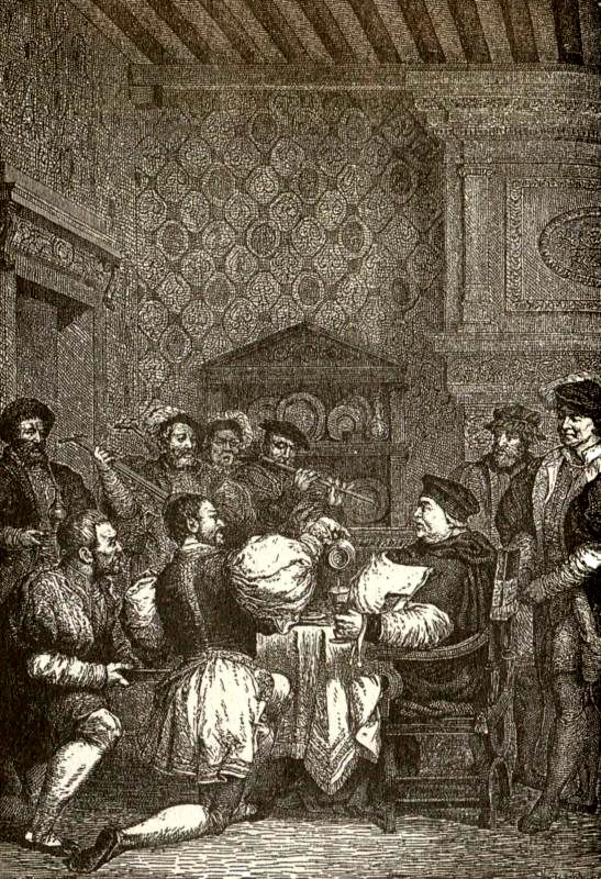 Короля и кардинала донельзя возмутила дерзость Лютера, и король (с помощью сэра Томаса Мора, мудреца, которому он впоследствии отрубил в благодарность голову) даже посвятил спору с ним целый труд и так угодил папе, что тот пожаловал ему звание Защитника Веры. Король и кардинал обращались к людям с пылкими воззваниями, предостерегавшими от чтения Лютеровых книг под страхом отлучения от церкви. Но книги все равно читали, и земля полнилась слухами про то, что было в них написано.