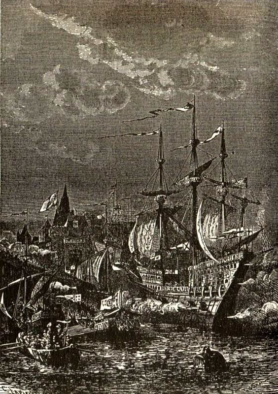 Зато король Испании Филипп угрожал стереть в порошок протестантскую Англию и возродить в этой стране католичество. Проведав, что он и герцог Пармский вовсю к этому готовятся, Елизавета опередила их и отправила адмирала Дрейка (знаменитого мореплавателя, который совершил кругосветное плавание и привез из Испании огромную добычу) в порт Кадис. Там он поджег сотню кораблей, набитых до отказа всяким добром. Такая невосполнимая потеря заставила испанцев отсрочить вторжение на год, хотя им бы вполне хватило и оставшихся у них ста тридцати кораблей, девятнадцати тысяч солдат, восьми тысяч моряков, двух тысяч рабов и двух-трех тысяч пушек большого калибра. Англия, между тем, не сидела сложа руки, а готовилась дать отпор этой грозной силе. Все мужчины от шестнадцати до шестидесяти лет были обучены военному искусству и прошли муштру, корабельный флот государства (а он сперва состоял из тридцати четырех кораблей) пополнился за счет собранных народом денег и пожертвованных богатыми дворянами кораблей, лондонцы добровольно удвоили число кораблей и солдат против того, что от них требовалось, невиданный подъем национального духа переживала Англия, сплотившаяся, чтобы отразить нападение испанцев. Кое-кто из советчиков королевы подбивал ее уничтожить главных католиков в Англии, но Елизавета, надо отдать ей должное, всегда говорила, что подданные, для нее – все равно как дети, для родительницы, и она не верит в их дурные наклонности, и потому она отвергла такой совет и приговорила к смерти только самых подозрительных, прятавшихся среди болот Линкольншира. Большинство католиков оправдали ее доверие, показав себя людьми благонадежными, достойными и храбрыми.