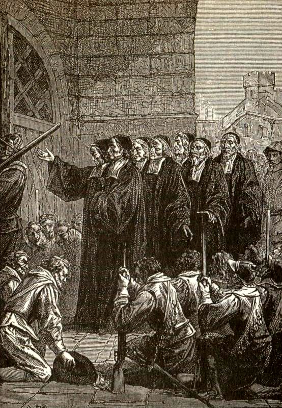 Когда епископы прибыли в Тауэр, караульные офицеры и солдаты умоляли их о благословении