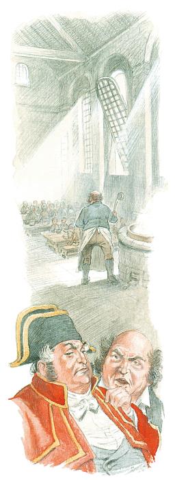 Тут привели Оливера и посадили в деревянный загон для обвиняемых.