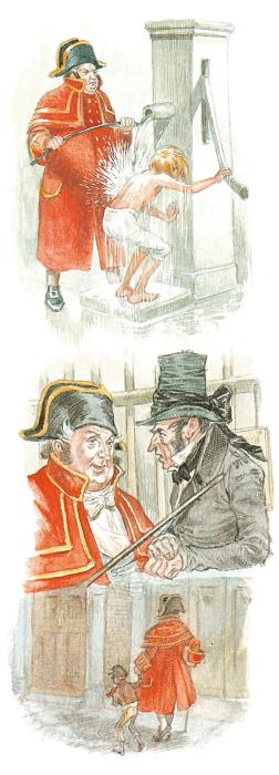 Надзиратель ударил Оливера черпаком по голове, крепко схватил его за руки и завопил, призывая бидла.
