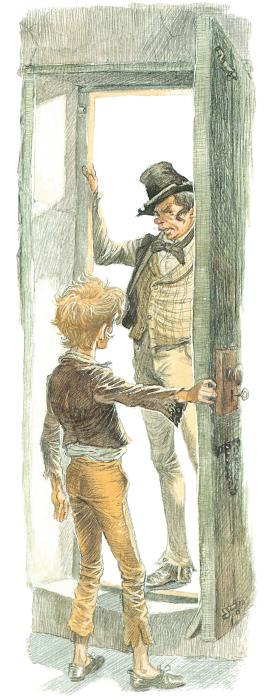 Схватив Оливера за ухо, он выволок мальчика из зала и запер в комнате без окон. Оливер остался один в темноте.