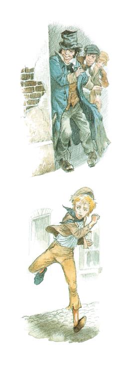Оливер увидел, как Плут засунул руку в карман пожилого джентльмена и вытащил оттуда носовой платок. Он передал трофей Чарли, и затем оба мальчика бросились бежать и свернули за угол.