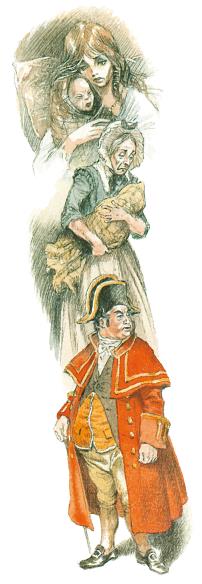 Весть о рождении младенца дошла до мистера Бамбла, который занимал должность бидла – приходского чиновника, в чьём ведении состояли местные бедняки. Мистер Бамбл был человек дородный и раздражительный. Он расхаживал в высокой треуголке и всегда имел при себе трость, которой нещадно лупил надоедливых детей, попадавшихся ему на пути.