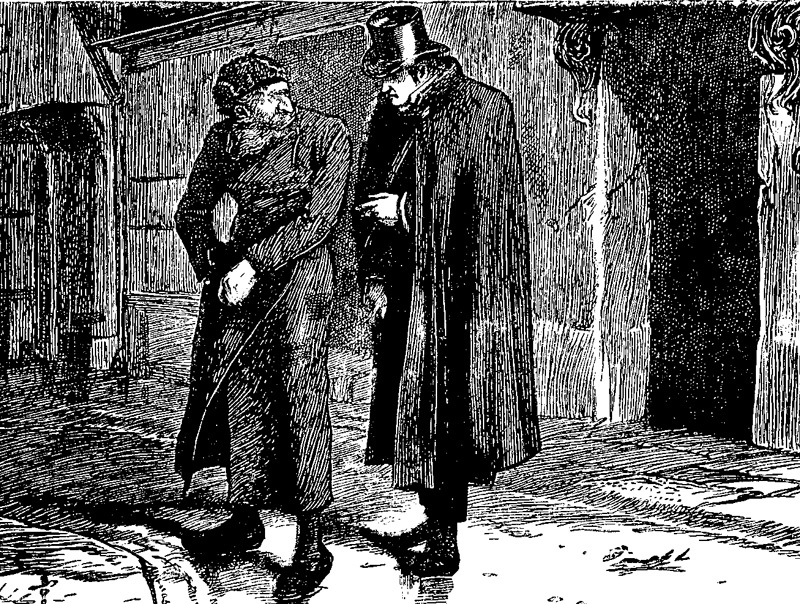 Сначала мужчины говорили шепотом, и можно было расслышать только отдельные слова. Феджин все время словно защищался и оправдывался, а Монкс – так старик называл незнакомца – за что-то сердился и нападал на него. Наконец он сказал, в сердцах возвышая голос: