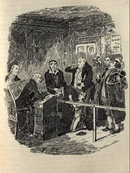 И так как треуголка и трость были уже приведены в порядок, к удовольствию их владельца, мистер Бамбл поспешил с Ноэ Клейполом в лавку гробовщика.