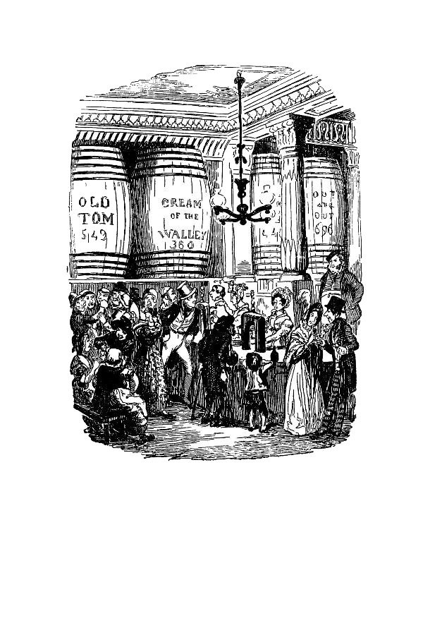 Но вот вы поворачиваете за угол – какой контраст! Блеск и великолепие кругом! Из ярко освещенного кабака, что стоит на развилке двух улиц, доносится гул множества голосов; пестрый домик с диковинным орнаментом на фасаде, светящийся циферблат часов, зеркальные стекла в окнах и лепные розанчики вокруг них, обилие щедро позолоченных газовых рожков производят впечатление воистину ослепительное после мрака и грязи, только что нас окружавших. Внутри кабака еще наряднее. Поперек комнаты тянется стайка полированного красного дерева с изящной резьбой, а по бокам ее, отгороженные легкими медными перилами, выстроились в ряд огромные зеленые с позолотой бочки, па каждой из которых красуется надпись: «Старый Том, 549», «Молодой Том, 360», «Самсон, 1421», где цифры, надо полагать, означают количество галлонов в бочонке. По ту сторону стойки – просторная, высокая зала, где такие же в высшей степени заманчивые сосуды можно видеть и внизу и на хорах. На самой стойке помимо обычной батареи бутылок стоят две-три корзинки с печеньем и пирожными, предусмотрительно закрытые плетеными крышками – на случай незаконных посягательств. За стойкой две эффектно разодетые девицы с тяжелыми бусами на шее разливают вино и «смеси». Им помогает плотный, с грубыми чертами лица человек в меховой шапке, которую он лихо заламывает набекрень, чтобы все видели, во-первых, какой он дошлый малый и, во-вторых, какие у него великолепные рыжие бакенбарды. Надо полагать, что он и есть хозяин заведения.
