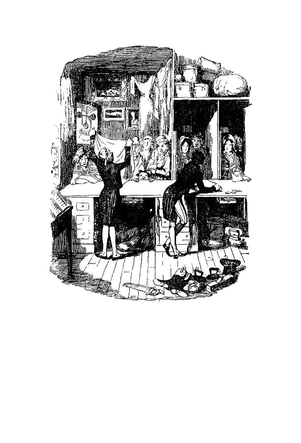 Итак, повернув направо по уже упомянутому коридору и ни слова не сказав о промежуточных дверях – если б мы вздумали отмечать каждую дверь, которую отпирали, чтобы дать нам пройти, и тут же опять за нами запирали, нам потребовалось бы по двери на каждую запятую,– мы дошли до ворот, сколоченных из толстых досок, и увидели за ними десятка два женщин, ходивших взад-вперед по узкому двору; впрочем, почти все они, заметив посторонних, тотчас скрылись в своих камерах. От этого двора с одной стороны отгорожено железными прутьями нечто вроде клетки высотой примерно в пять футов и десять дюймов; и отсюда-то разговаривают с арестантками те, кто приходит их навестить. В одном углу этой необыкновенной клетки желтая, изможденная старуха в рваном, некогда черном платье и в ветхой соломенной шляпке с выгоревшей лентой того же цвета, что-то взволнованно говорила девушке лет двадцати двух – разумеется, заключенной. Невозможно вообразить существо более нищее, более придавленное нуждой и горем, чем эта старуха. Девушка была красивая, статная, густые ее волосы развевались по ветру – она стояла с непокрытой головой,– на пышные плечи накинут был шелковый мужской платок. Старуха говорила тихим, напряженным голосом, свидетельствующим о глубокой душевной муке; временами у нее вырывался горестный стон, от которого переворачивалось сердце. Девушка была совершенно спокойна. Безнадежно очерствевшая, она угрюмо выслушивала мольбы матери; только раз она справилась про «Джема» да жадно схватила несколько медяков, которые принесла ей несчастная старуха; в остальном же, как видно, беседа интересовала ее не больше, чем самого равнодушного стороннего наблюдателя. Видит бог, таких было достаточно – другие женщины в этом же дворе оставались безучастны к тому, что происходило рядом с ними, точно были слепы и глухи. Да и не удивительно: они насмотрелись на подобные сцены и в тюрьме и за ее стенами и обращали на них внимание разве только для того, чтобы высмеять и втоптать в грязь чувства, которые сами они давно позабыли.