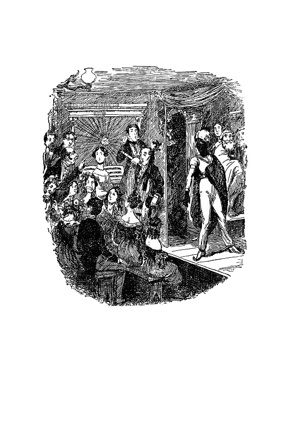 Пробило семь, и прибыли зрители. Избранное общество Клэпема и его окрестностей быстро заполняло театральную залу. Здесь были Смиты и Габбинсы, Никсоны, Диксоны и Хиксоны, и еще другие люди с самыми различными фамилиями; были два олдермена и один будущий шериф; был сэр Томас Глампер, в прошлое царствование получивший титул за то, что преподнес его величеству адрес по случаю спасения кого-то от чего-то, и, наконец, хотя, быть может, с них-то и следовало начать,– в третьем ряду посредине восседали миссис Джозеф Портер и дядюшка Том, причем миссис Портер развлекала дядюшку Тома, рассказывая ему разные забавные истории, а дядюшка Том развлекал всех остальных, хохоча во все горло.