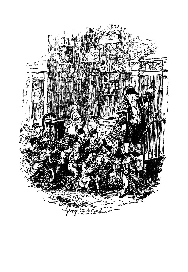 Таковы некоторые черты, из коих можно видеть всю важность и солидность приходского надзирателя – солидность, ничем не нарушавшуюся во всех случаях, какие нам приходилось наблюдать, кроме тех, когда требовалось пустить в ход чрезвычайно полезный механизм – приходскую пожарную машину: тогда действительно творится бог знает что. Двое мальчишек со всех ног бегут к приходскому надзирателю и сообщают ему, что они своими глазами видели, как в трубе у соседей загорелась сажа; машину поспешно выкатывают из сарая, сгоняют к ней целый отряд мальчишек, и, припряженные к ней веревками, они с грохотом волокут ее по мостовой, а надзиратель бежит,– мы не преувеличиваем,– бежит рядом; наконец, машина подкатывает к дому, вокруг которого сильно пахнет сажей, и приходский надзиратель стучит в дверь не менее получаса, не теряя при этом солидности. Так как никто не обращает внимания на массу затраченного им ручного труда, а воду уже спустили, то пожарная машина поворачивает обратно под крики мальчишек и опять подкатывает к работному дому; а на другой день надзиратель закатывает выговор несчастному домовладельцу и взыскивает с него сколько полагается по закону. На настоящем пожаре нам пришлось видеть приходскую пожарную машину всего один раз. Она прибыла с невиданной скоростью, делая по крайней мере три с половиной мили в час, запас воды был солидный, и на место она явилась первой. Заработал пожарный насос, толпа уже кричала «ура!», с приходского надзирателя градом катился пот; но, к несчастью, когда уже совсем собрались тушить пожар, обнаружилось, что никто не знает, как надо наливать воду в эту самую машину, и что восемнадцать мальчишек и один взрослый двадцать минут качали изо всех сил впустую, без всякого толку!