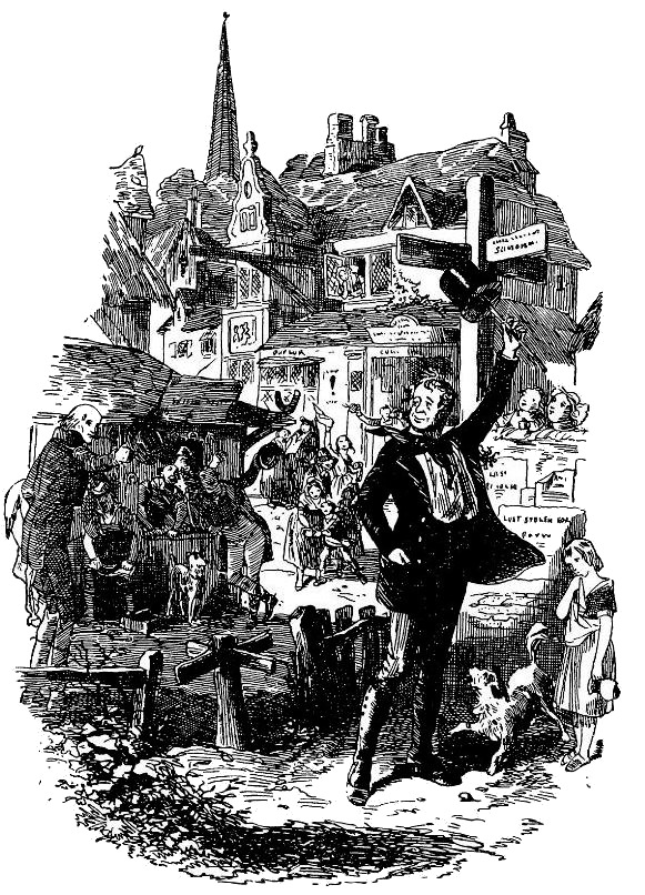 – Прощай и ты, и все прощайте! – говорил Марк, размахивая надетой на палку шляпой и быстро шагая по узенькой улице. – Отличные ребята эти колесники – ура! А вот и мясникова собака выбегает из палисадника – тубо, дружок! Вон и мистер Пинч пошел играть на органе – прощайте, сэр! И такса из дома напротив тоже тут. – Ну, ну, будет тебе, старуха! И ребятишек видимо-невидимо, хватит для поддержания рода человеческого на веки вечные. Прощайте, мальчики и девочки! Вот уж это делает мне честь. Наконец-то нашлось хоть что-нибудь мне по плечу. Обыкновенному человеку в таких обстоятельствах пришлось бы куда как плохо, ну, а я человек веселый, хотя и не так весел, как хотелось бы, а все-таки около того. Прощайте, прощайте!