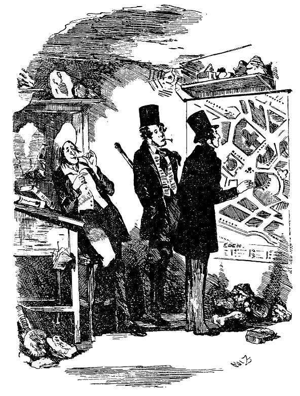 Как только среди постояльцев «Национального отеля» распространилось известие, что молодой англичанин мистер Чезлвит приобрел владение в долине Эдема и намерен с первым пароходом отправиться в этот земной рай, он сделался знаменитостью. Почему так случилось или каким образом произошло, Мартин знал не больше, чем миссис Гэмп у себя на Кингсгейт-стрит в Верхнем Холборне; но что на какое-то время он сделался местным львом по общему выбору – и что его общества слишком часто искали, в этом не могло быть ни малейшего сомнения.