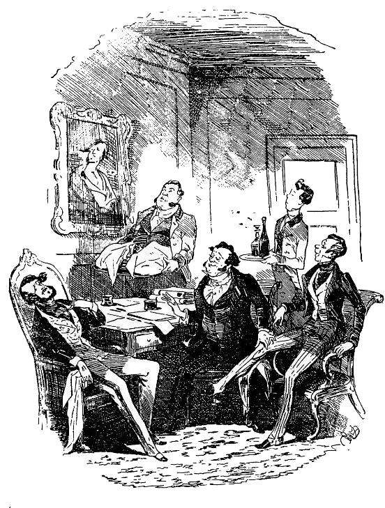 – Джоблинг, дорогой мой, – сказал мистер Тигг, – как вы поживаете? Буллами, постойте за дверью. Кримпл, не оставляйте нас. Джоблинг, мой любезный друг, я очень рад вас видеть.